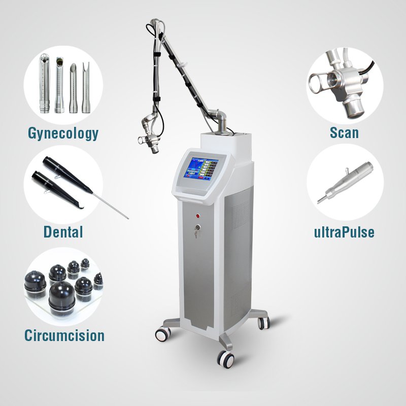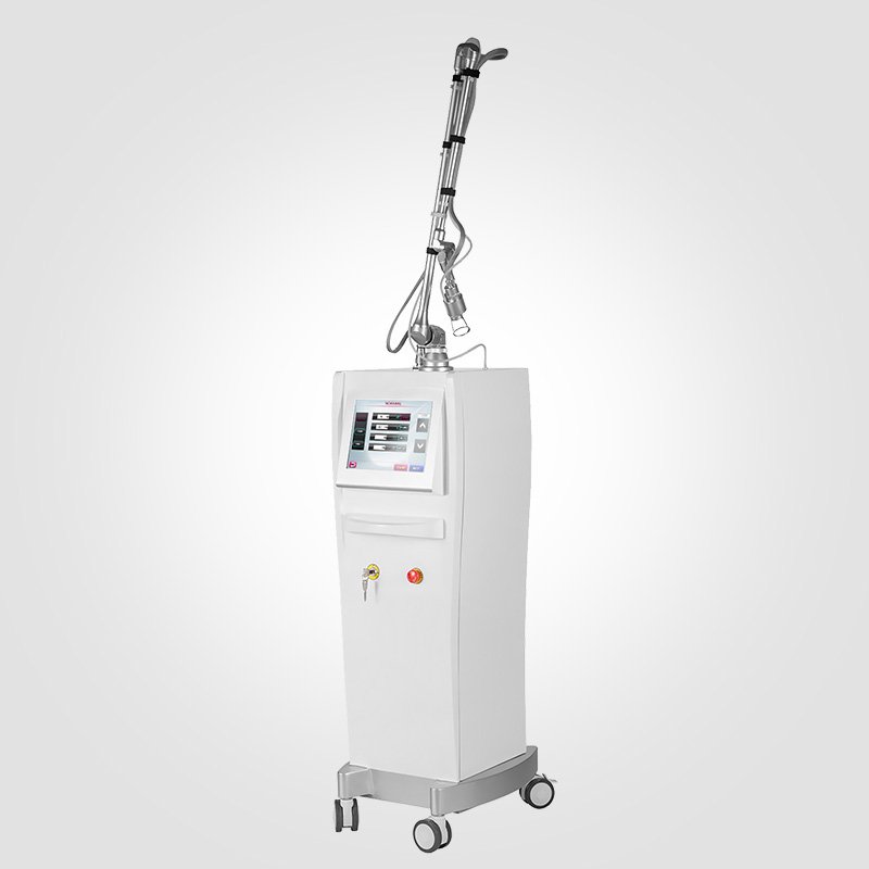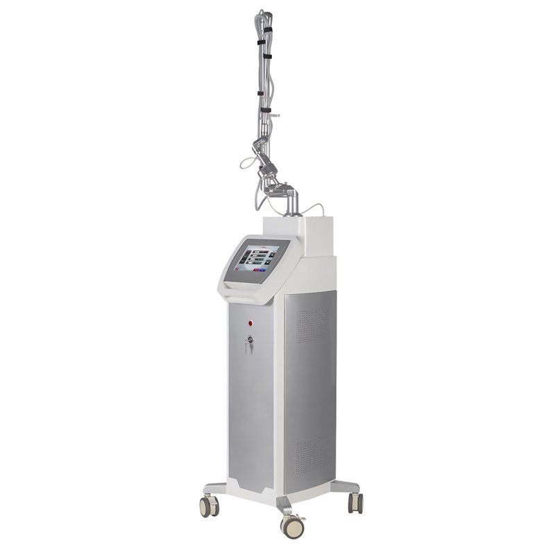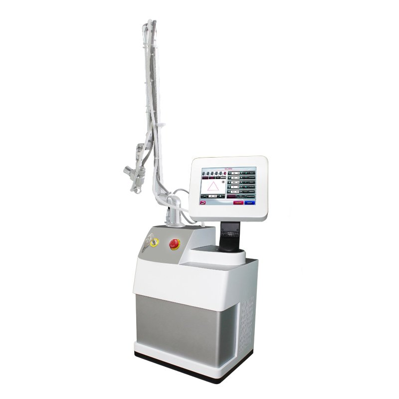 Com base a técnica fototermolisis seletiva, o aparelho de lase CO2 fracionado tem vantagens de efeitos rápidos e notáveis, menos efeitos colaterais e curto periodo de recuperação, o que é a combinação dos meritos tanto do tratamento invasivo como do tratamento não invasivo. O tratamento com o laser CO2 fracionado refere-se a micro-furos perfurados na pele com laser, para induzir a série de reações bioquímicas, alcançando deste modo os efeitos de redução da flacidez da pele remoção de pintas. Este tratamento a base do laser fracionado apenas cobre parte dos tecidos da pele, e os novos burracos perfurados não irão sobrepor-se entre si, entao parte da pele normal pode ser reservada para recuperação rápida, de modo a fazer com que os pacientes possam voltar a vida normal após 4 ou 5 dias depois. O tratamento em si é seguro o suficiente para ser aplicado em qualquer parte do corpo, e as indicações incluem cicatrizes de acne, remoção e iluminação de pintas, cicatrizes cirurgicas, cicatrizes traumáticas, cicatrizes de queimadura, melisma, poiquilodermia, rugas, cutis flacida e pele com fotoenvelhecimento.