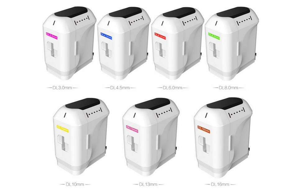 - Наличие 8 картриджей, которые фокусируют УЗ на разную глубину кожи. Глубина 1.5мм/3.0мм/4.5мм предназначена для терапии лица. Глубина 6.0мм/8.0мм/10.0мм/13.0мм/16.0мм предназначена для терапии тела.