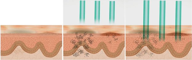 Eliminación de maquillaje permanente de cejas: Las longitudes de onda largas permiten que la luz láser penetrar profundamente en la dermis, el calor generado en los folículos se expanden en las células y matrices focalizadas para causar los efectos deseados. Debido al tiempo de acción breve (sólo durar varios nanosegundos), el pigmento se expanden de manera rápida luego de absorber los láseres de alta energía en un instante, y luego se fragmentada en gránulos finos que son fagocitizados y macrófagos y luego se eliminan del cuerpo es así como se logra la atenuación de pigmentos y blanqueamiento de la piel.